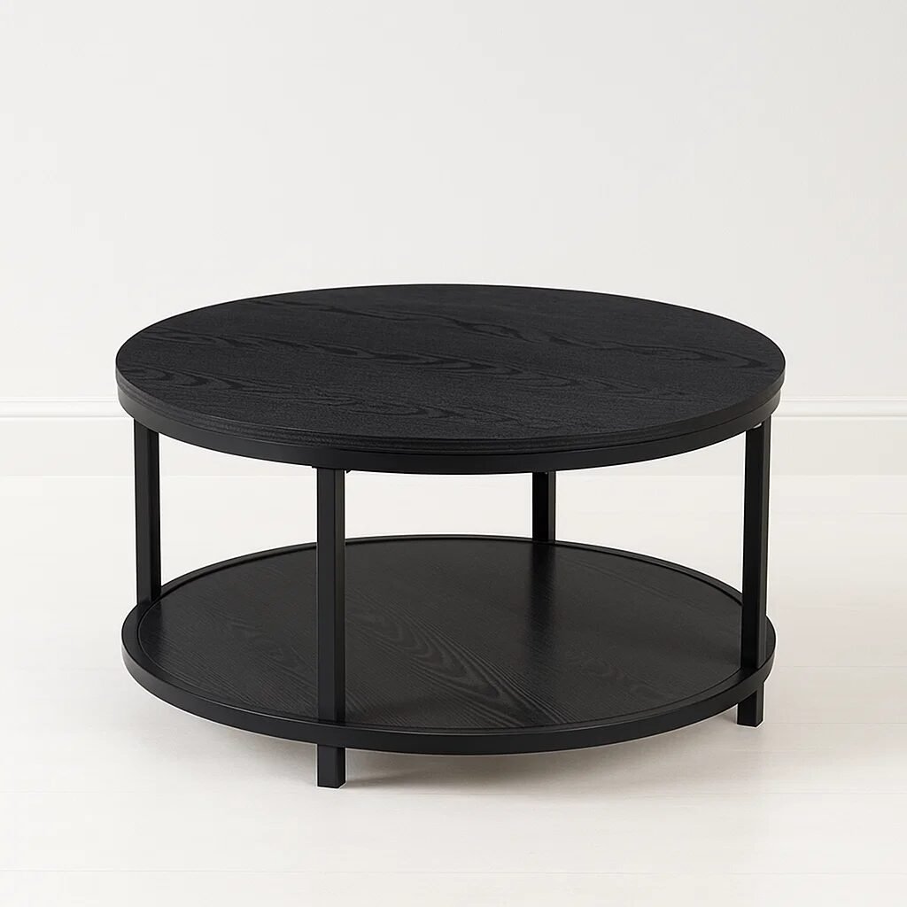 Mesa de Centro Redonda Negra Doble nivel